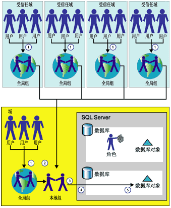 圖 1:Windows 用戶和組為 SQL Server 管理員提供了強(qiáng)大且靈活的安全模型