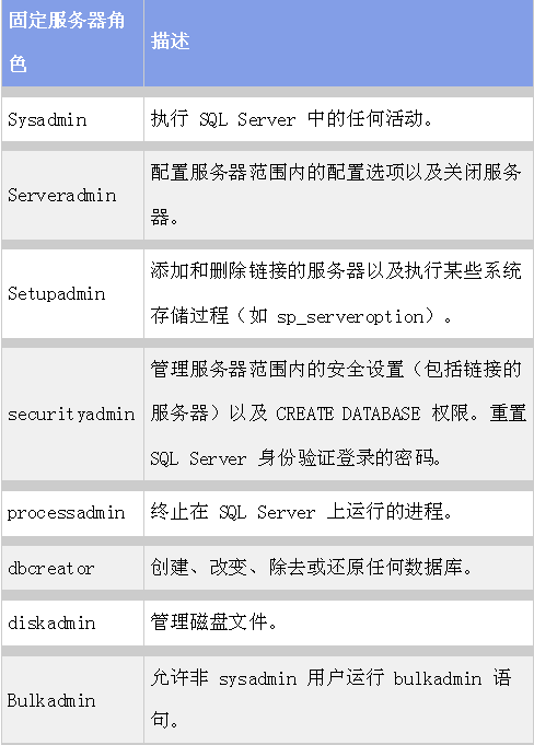 固定服務(wù)器角色的作用域在服務(wù)器范圍內(nèi)。它們存在于數(shù)據(jù)庫(kù)之外。固定服務(wù)器角色的每個(gè)成員都能夠向該角色中添加其他登錄。